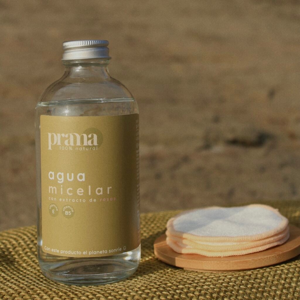 Agua micelar de rosas + 3 pads desmaquillantes reutilizables de algodón